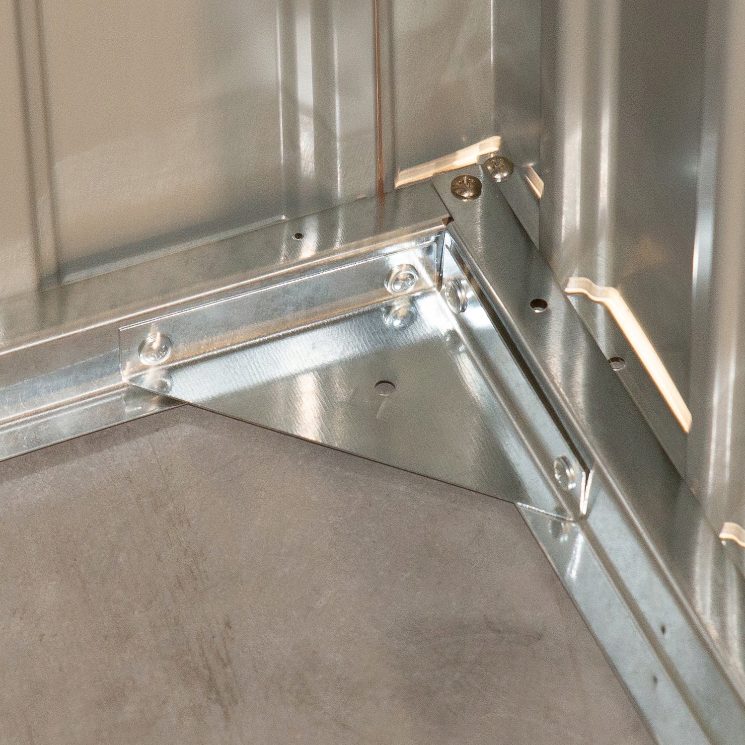 - Mocowanie do podłoża: W zestawie znajdują się kątowniki, które ułatwią przytwierdzenie schowku do podłoża. Kątownik należy przykręcić do aluminiowego profilu i zakotwiczyć go np. śrubami do betonu.
