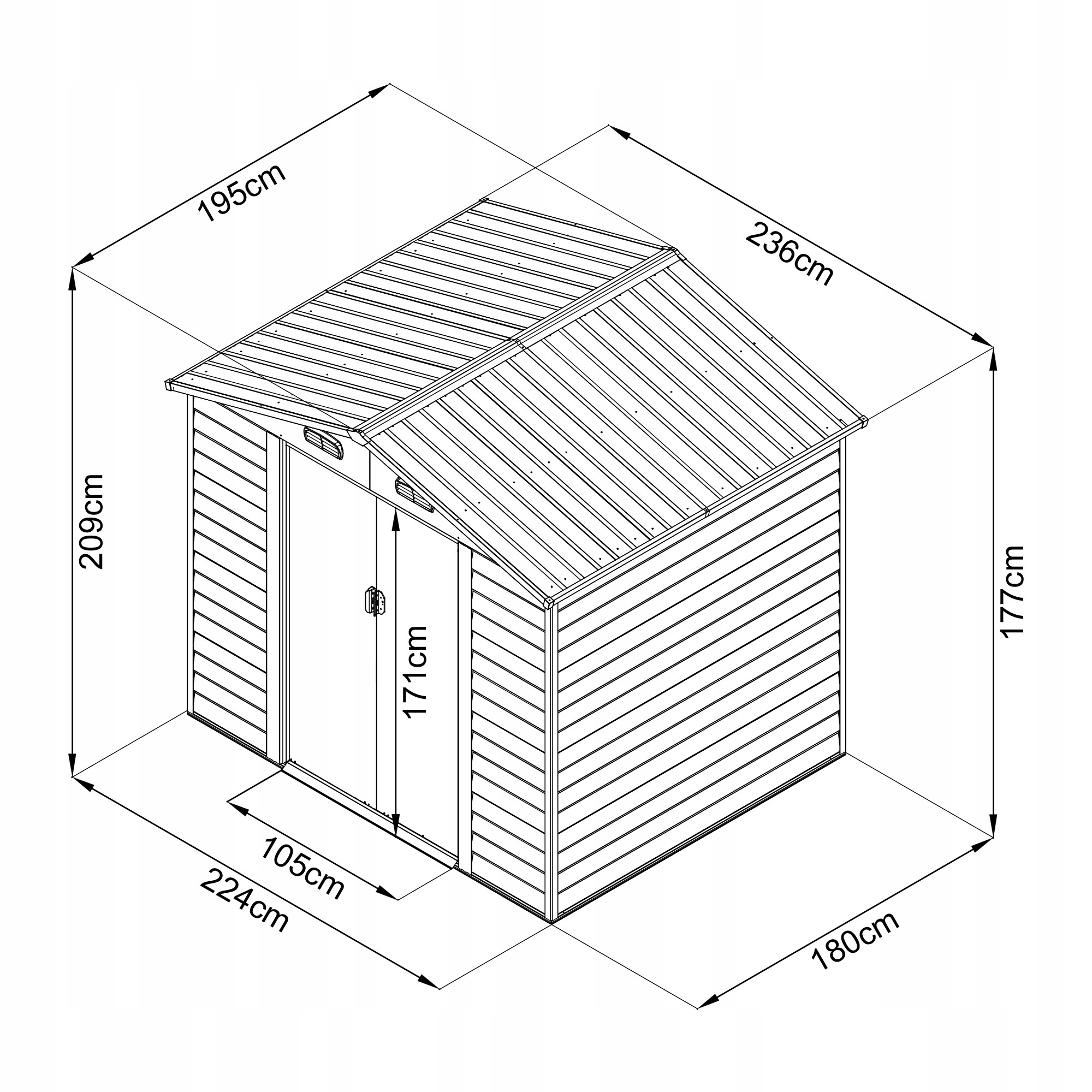 Domek narzędziowy ogrodowy – metalowy – Arbor II – 195x236x209