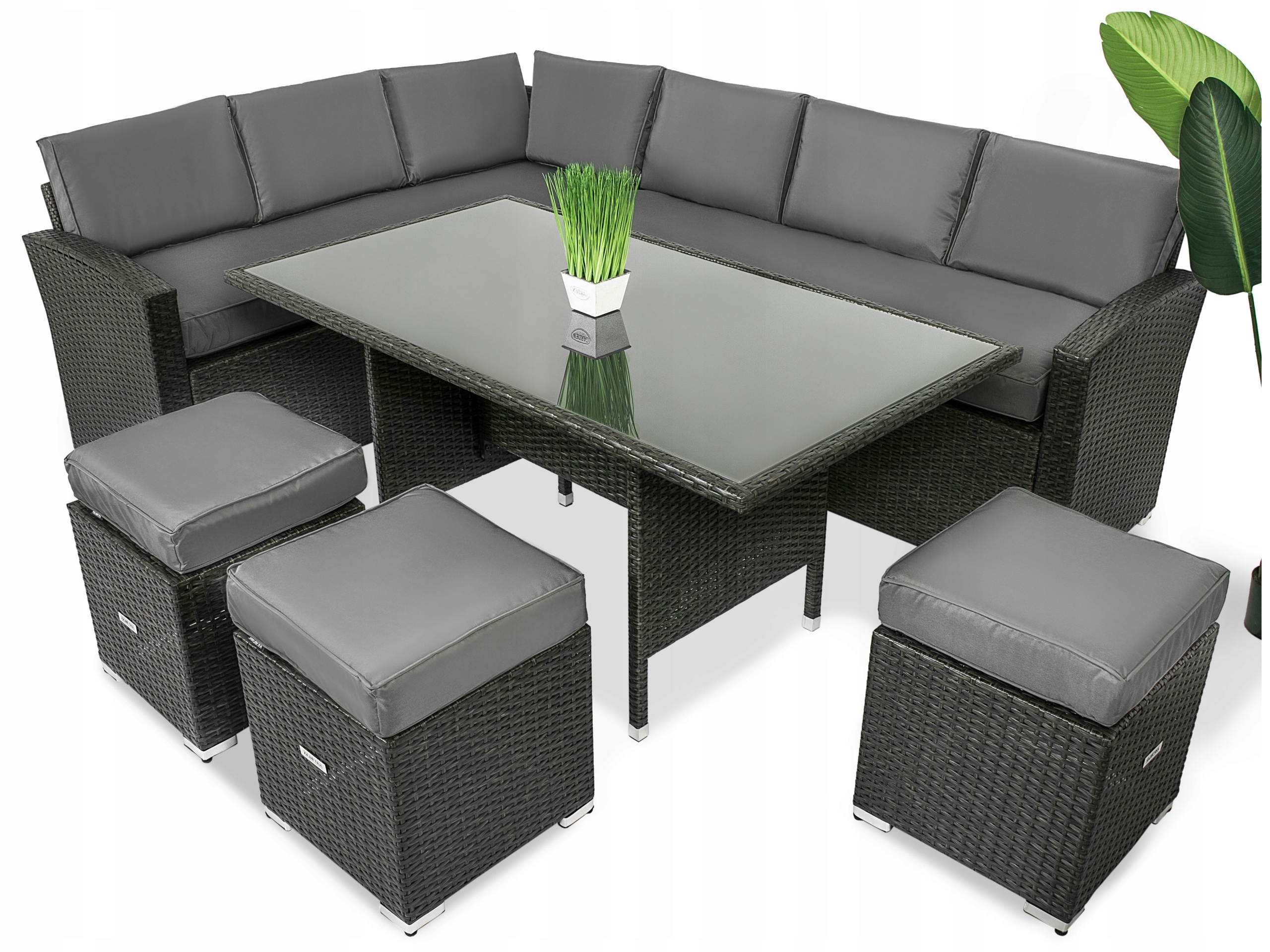 Meble ogrodowe technorattan zestaw stół i 6 wygodnych foteli z poduszkami