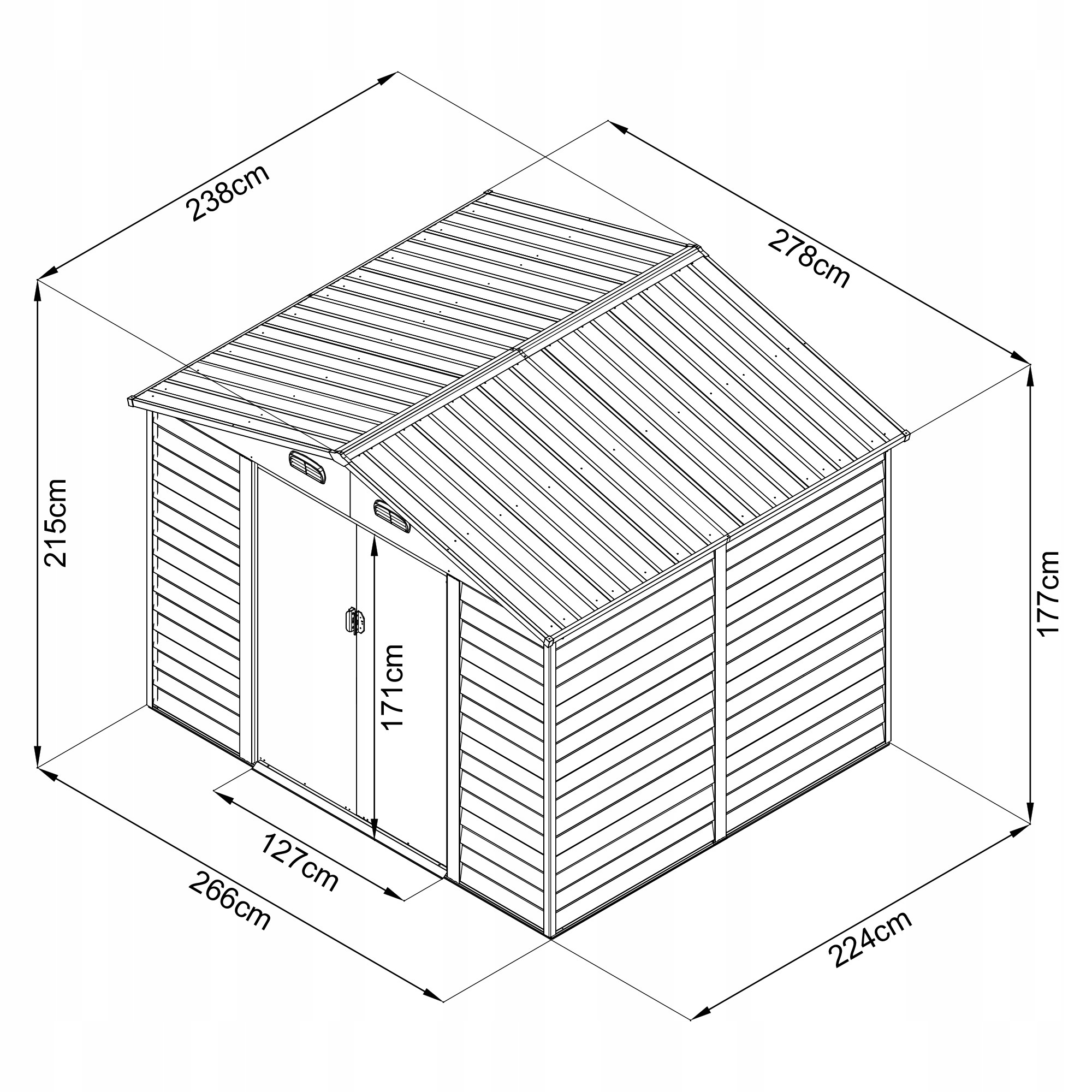 Domek narzędziowy ogrodowy – imetalowy – Arbor III – 238x278x215cm