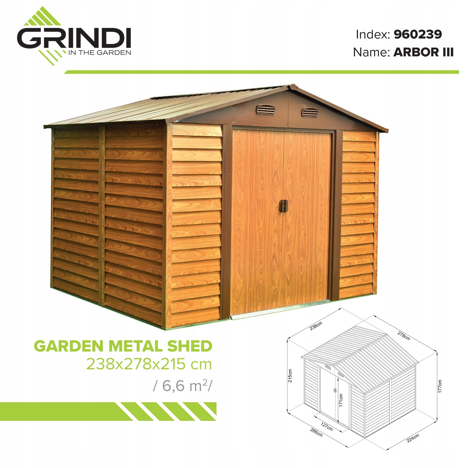 Domek narzędziowy ogrodowy szopa schowek metalowy 238x278cm wysoki ArborIII