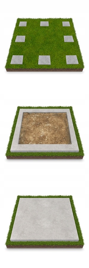 Najprostszym rozwiązaniem jest ułożenie na każdym z rogów garażu płyt betonowych (chodnikowych) lub cegłówek. Możesz także ustawić i wypoziomować minimum 4 stopy betonowe, po jednej na każdym rogu garażu. W przypadku większego garażu, liczbę stop betonowych należy dostosować do jego wymiarów.