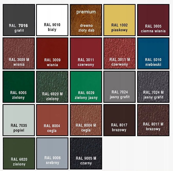 Prezentowane kolory blach mogą się różnić od faktycznych ze względu na różne ustawienia kart graficznych i monitorów.