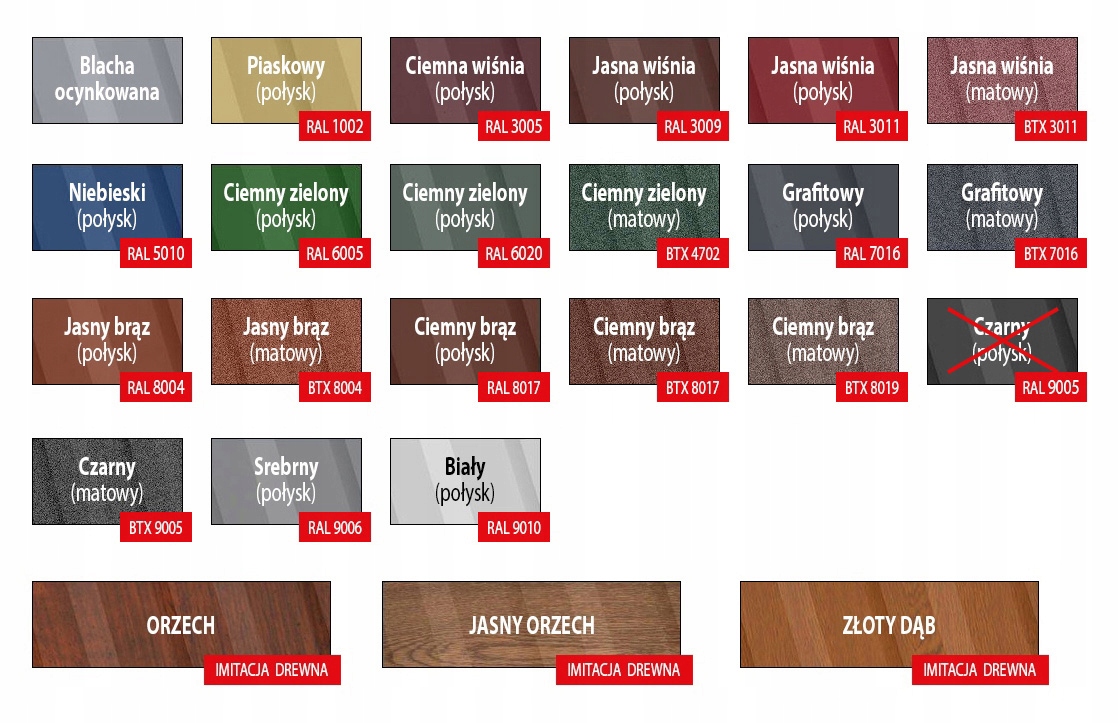 Dostępne kolory blachy