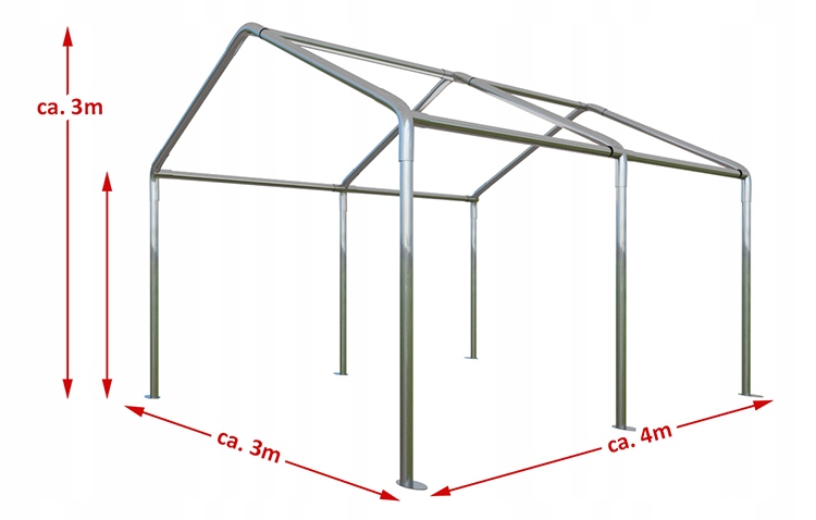 wymiar: 3×4 m, wysokość w szczycie: ok. 3 m