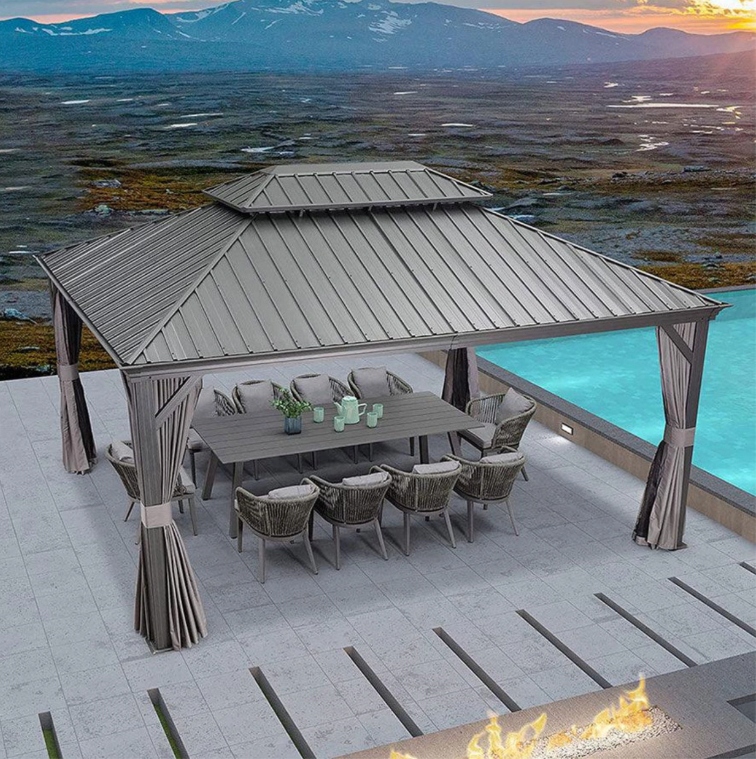➡️ Poznaj naszą ekskluzywną altanę stalowo-aluminiową, która została zaprojektowana z myślą o tych, którzy pragną stworzyć wyjątkową przestrzeń relaksu w swoim ogrodzie.