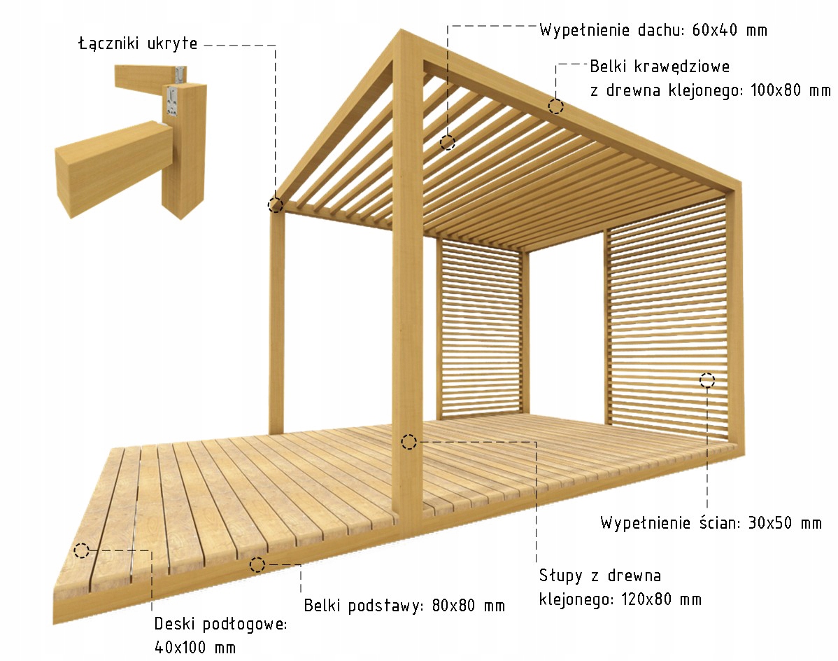 • Kompletny szkielet altany (dostajesz to co jest na grafice produktu)