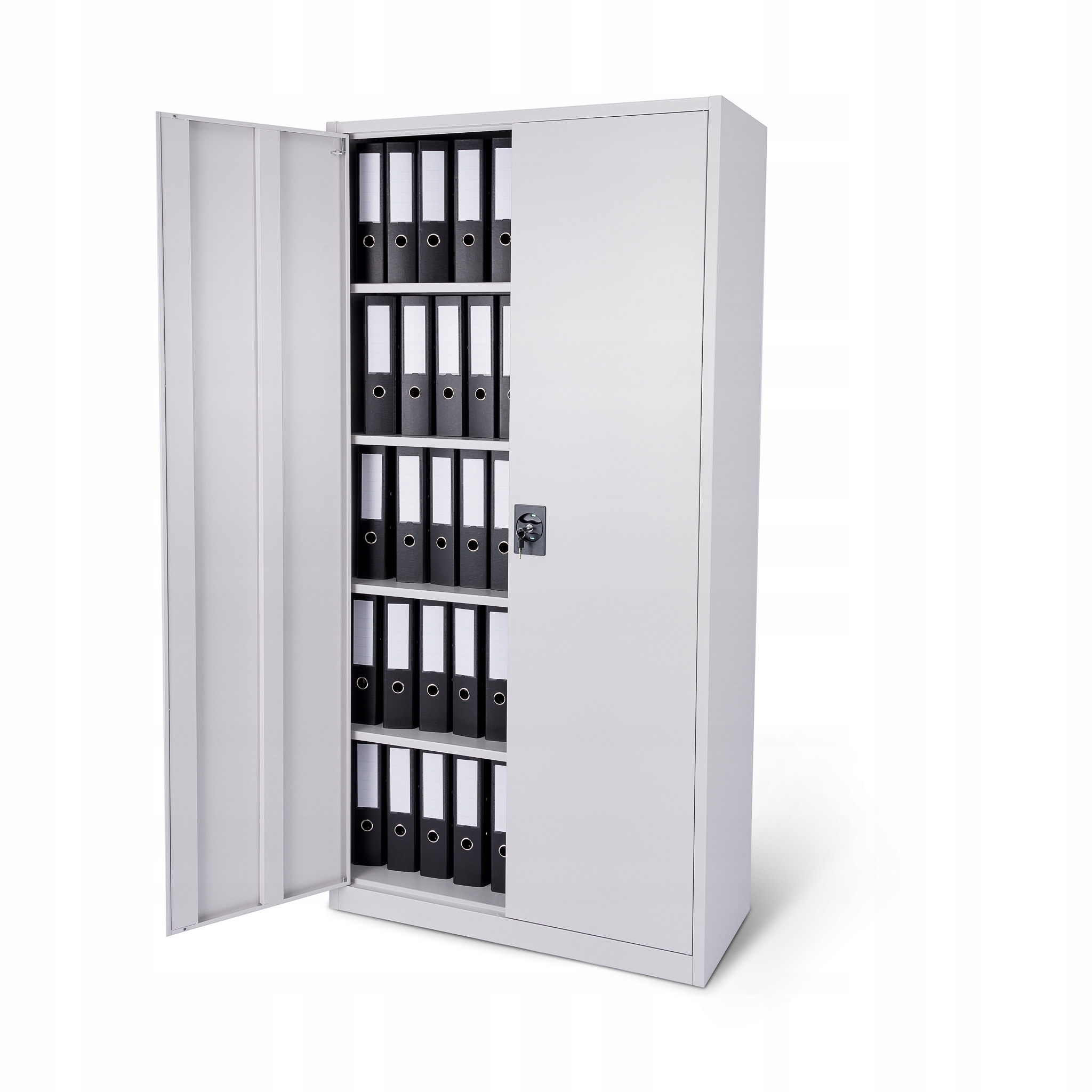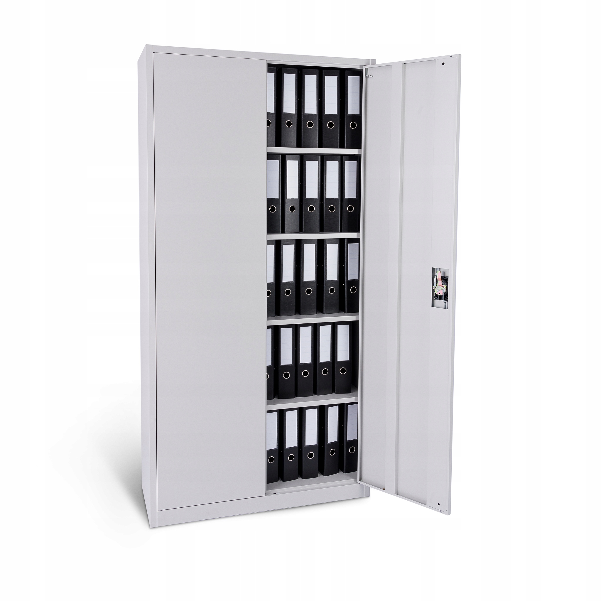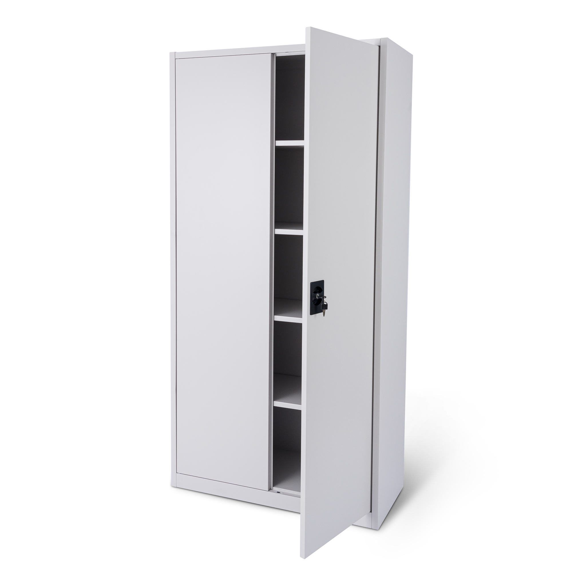 Szafa wyposażona jest w 4 stabilne półki. Każda półka może być obciążona ciężarem do 50 kg ( przy równomiernym rozłożeniu obciążenia ). Solidna i stabilna konstrukcja szafy w połączeniu z wysokiej jakości 3 punktowym zamkiem zapewniają ochronę przed dostępem nieuprawnionych osób.